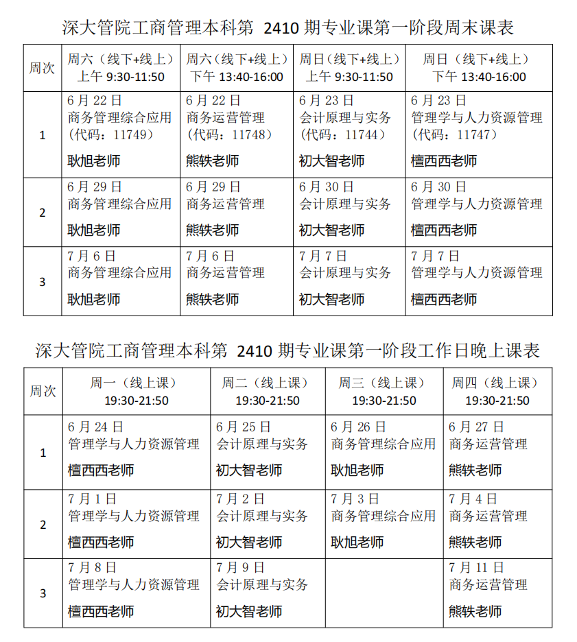 本期第一阶段的教学6月22日开始上课,7月份已完成。具体课表如下: